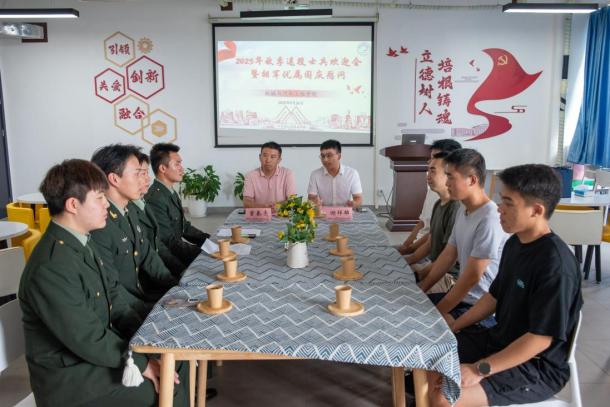 9月26日,2138cn太阳集团古天乐在交通楼举办2025年秋季退役士兵欢迎会暨拥军优属国庆慰问活动。学院学工组长董春亮、征兵辅导员谢祥雄、全体退伍学生参加活动。