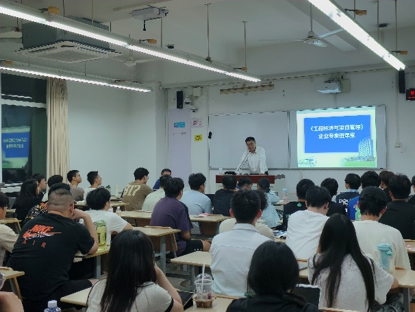 刘立峰结合自己近20年来在项目成本控制、风险评估、招投标管理等方面的理论功底和实战经验,以行业发展现状为切入点,立足自身主导的多个重点工程项目管理工作案例,生动形象地讲解了工程经济与项目管理在实际操作中的重点、难点问题,让学生们深刻认识到成本控制对于项目成功的重要性。并针对项目风险管理这一关键环节,分享了风险识别、风险评估以及风险应对策略的实战技巧,使抽象的理论知识变得具体可感。在互动交流环节,学生们纷纷结合课堂所学知识向专家提问。